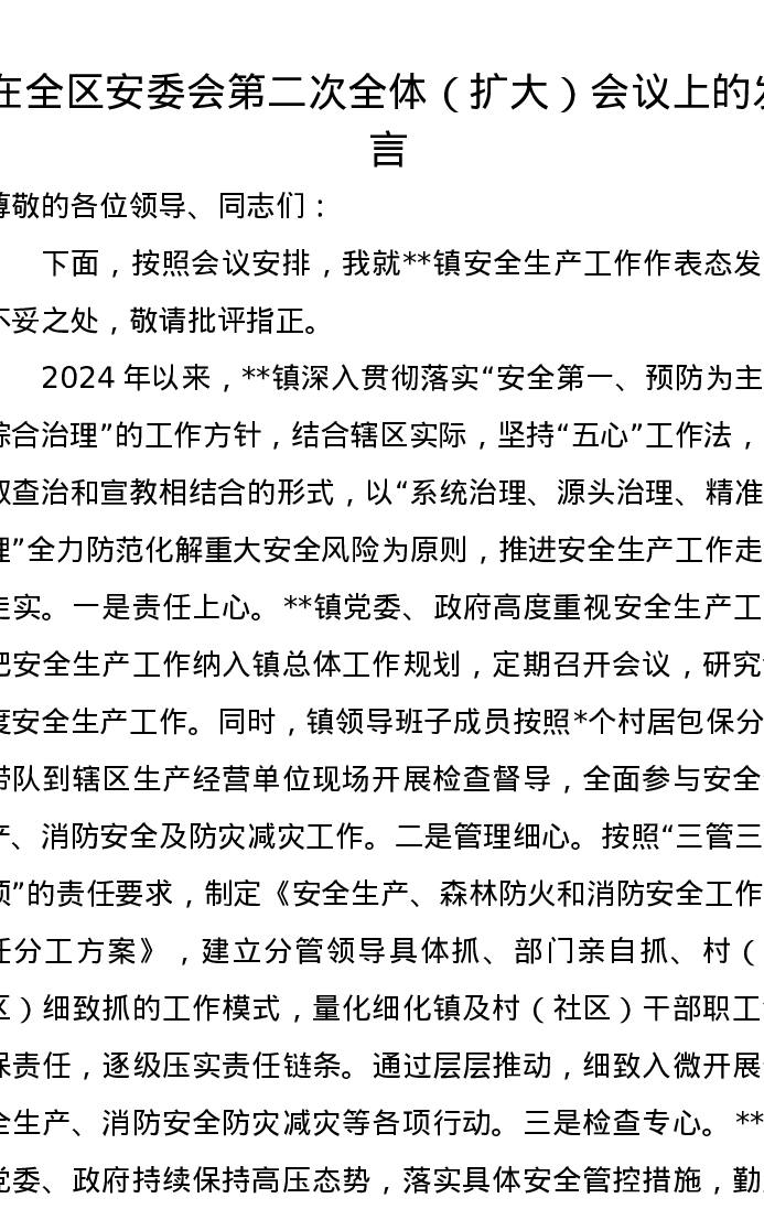 在全区安委会第二次全体(扩大)会议上的发言