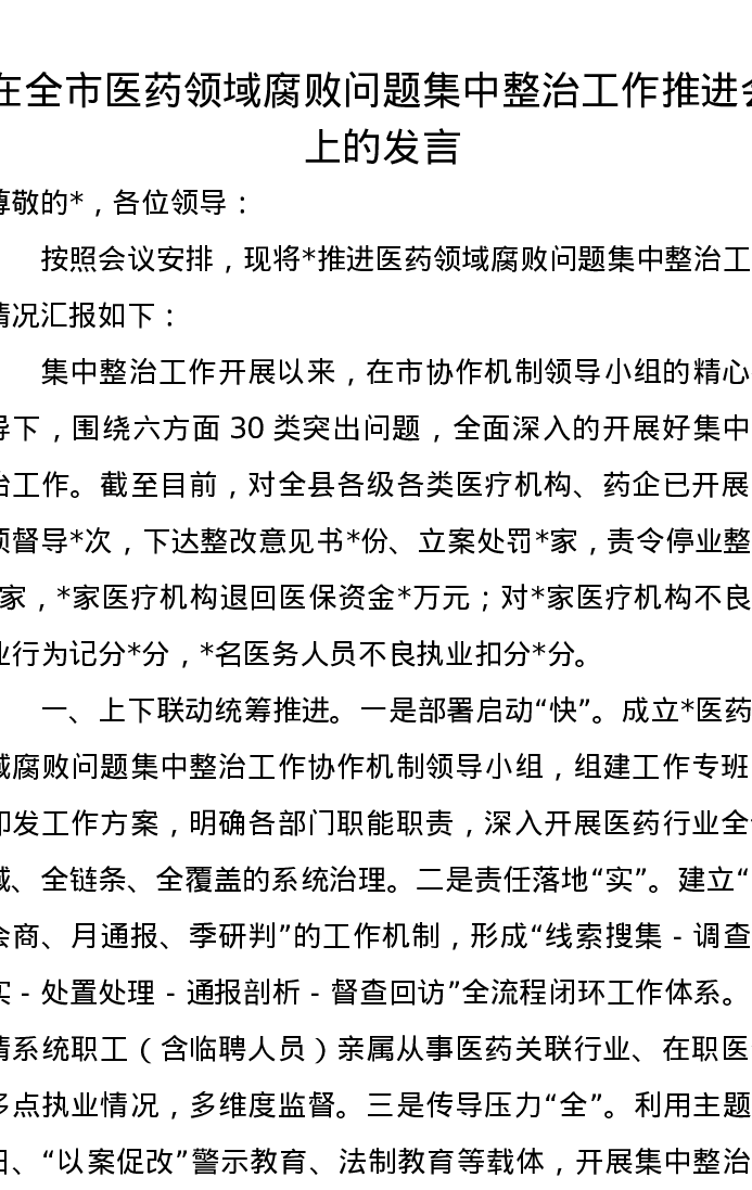 在全市医药领域腐败问题集中整治工作推进会上的发言