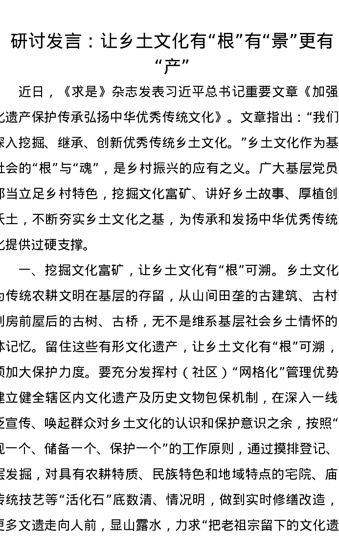 研讨发言:让乡土文化有“根”有“景”更有“产”