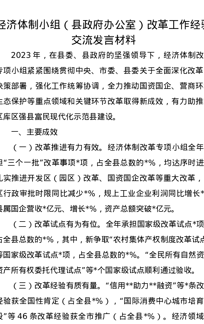 经济体制小组(县政府办公室)改革工作经验交流发言材料