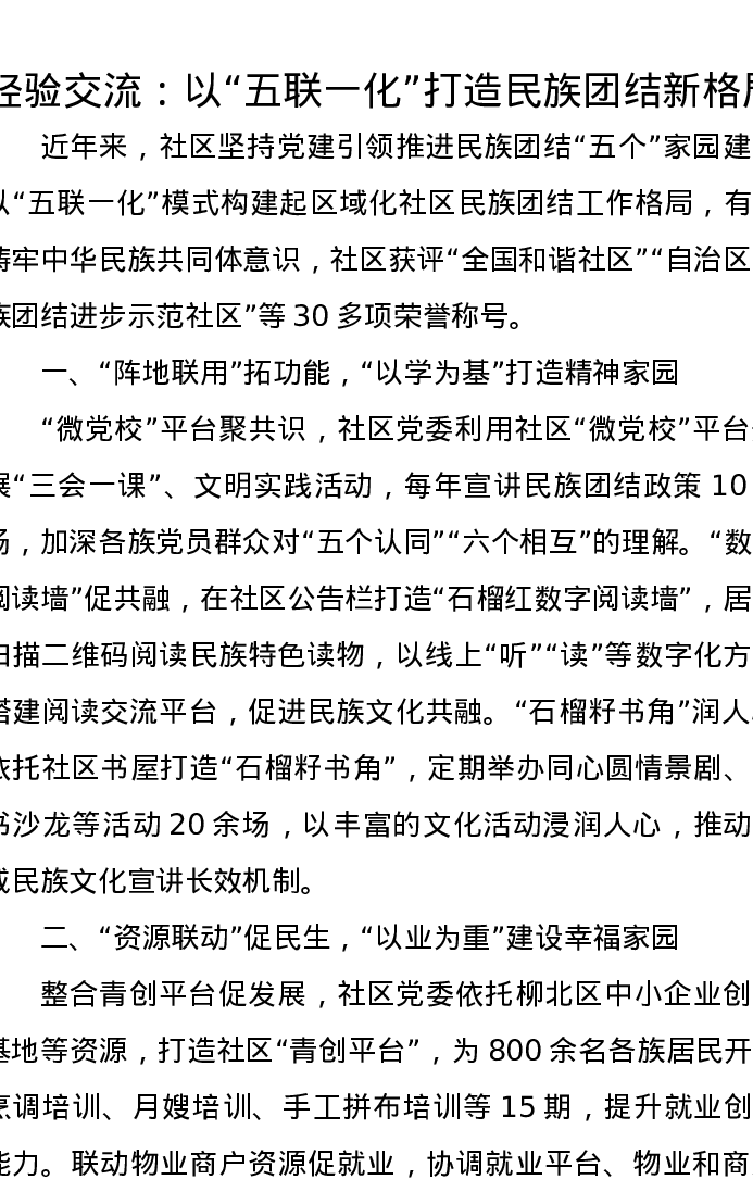 经验交流:以“五联一化”打造民族团结新格局