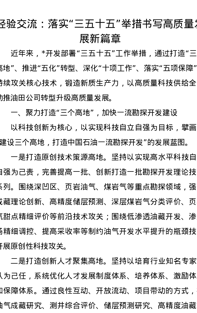 经验交流:落实“三五十五”举措书写高质量发展新篇章