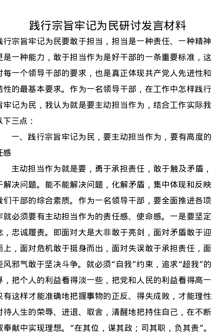 践行宗旨牢记为民研讨发言材料