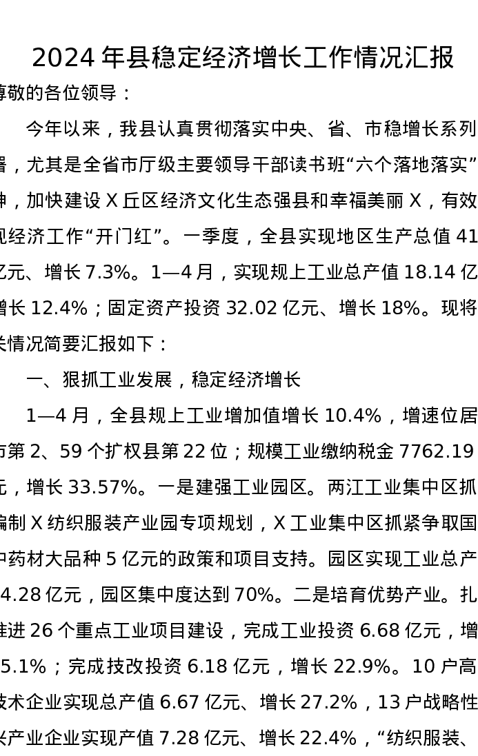 2024年县稳定经济增长工作情况汇报