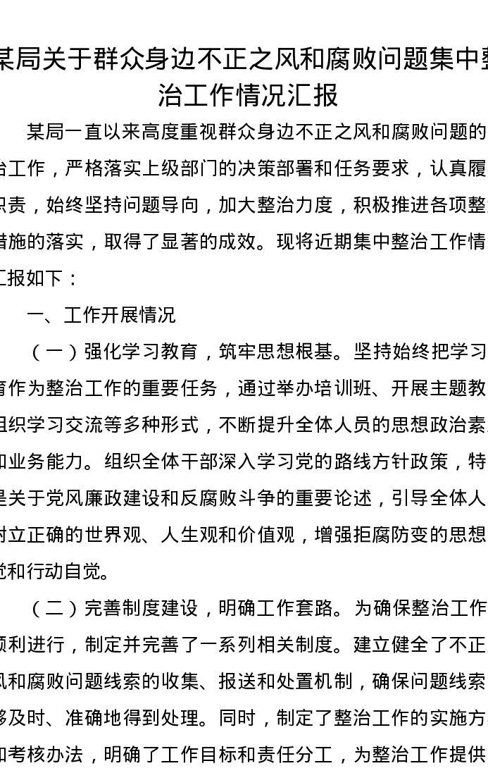 某局关于群众身边不正之风和腐败问题集中整治工作情况汇报