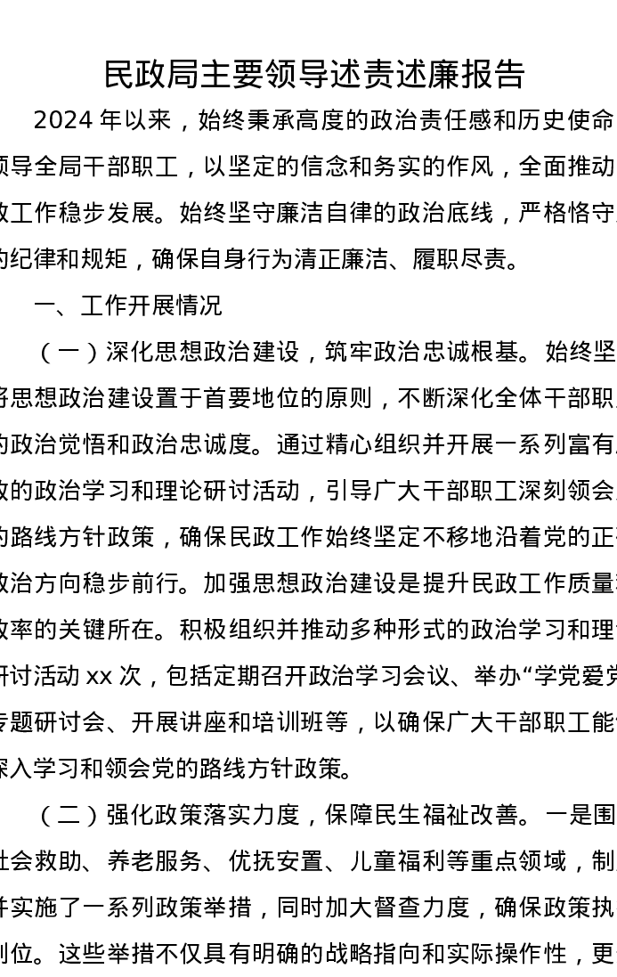 民政局主要领导述责述廉报告