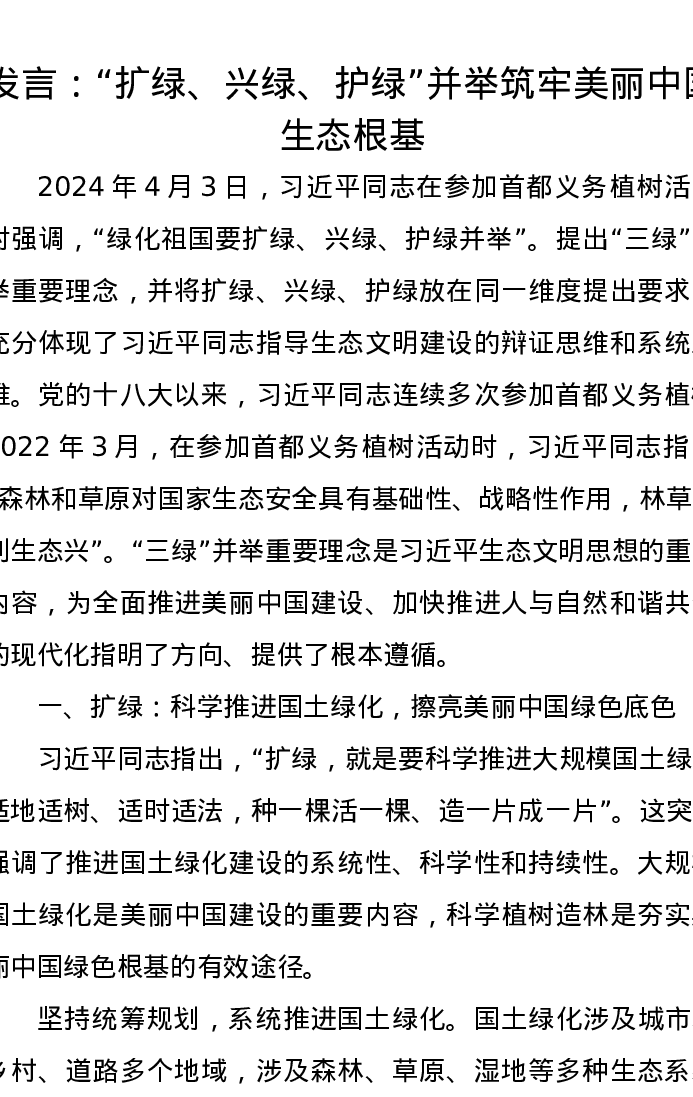 发言:“扩绿、兴绿、护绿”并举筑牢美丽中国生态根基