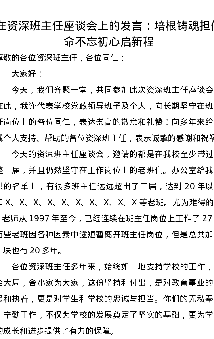 在资深班主任座谈会上的发言:培根铸魂担使命不忘初心启新程