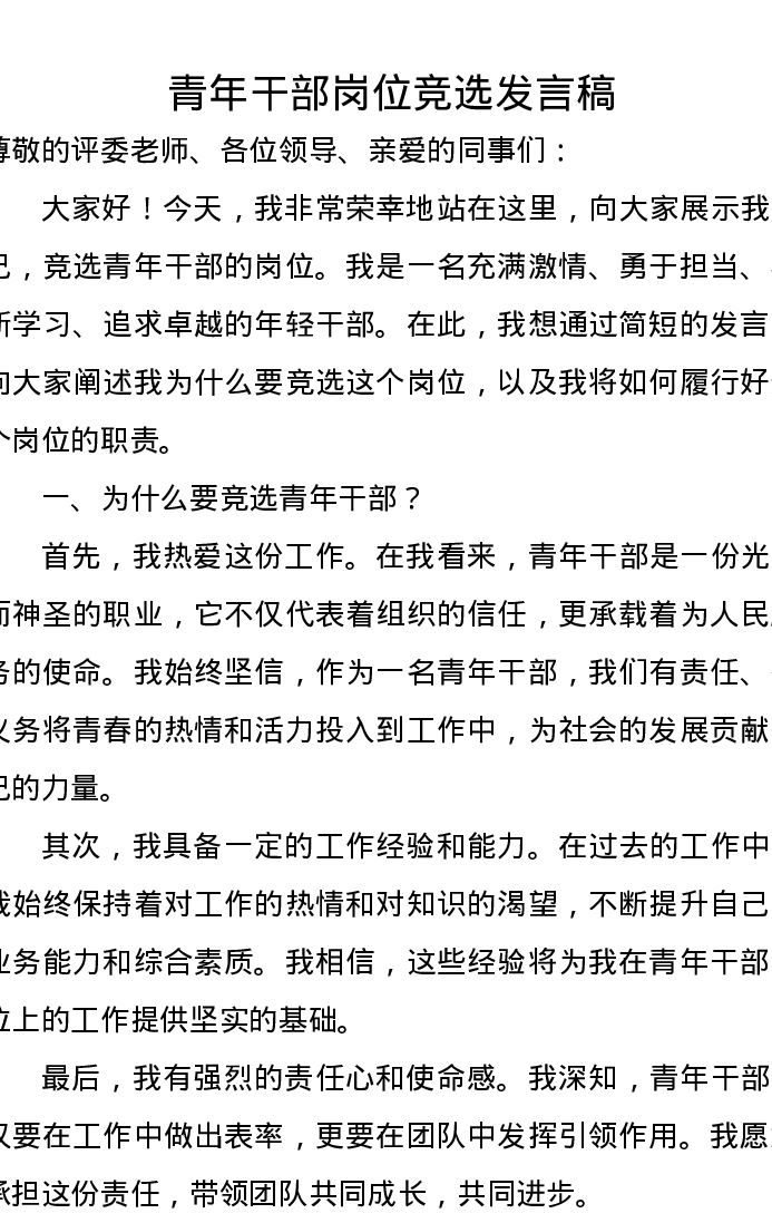 青年干部岗位竞选发言稿