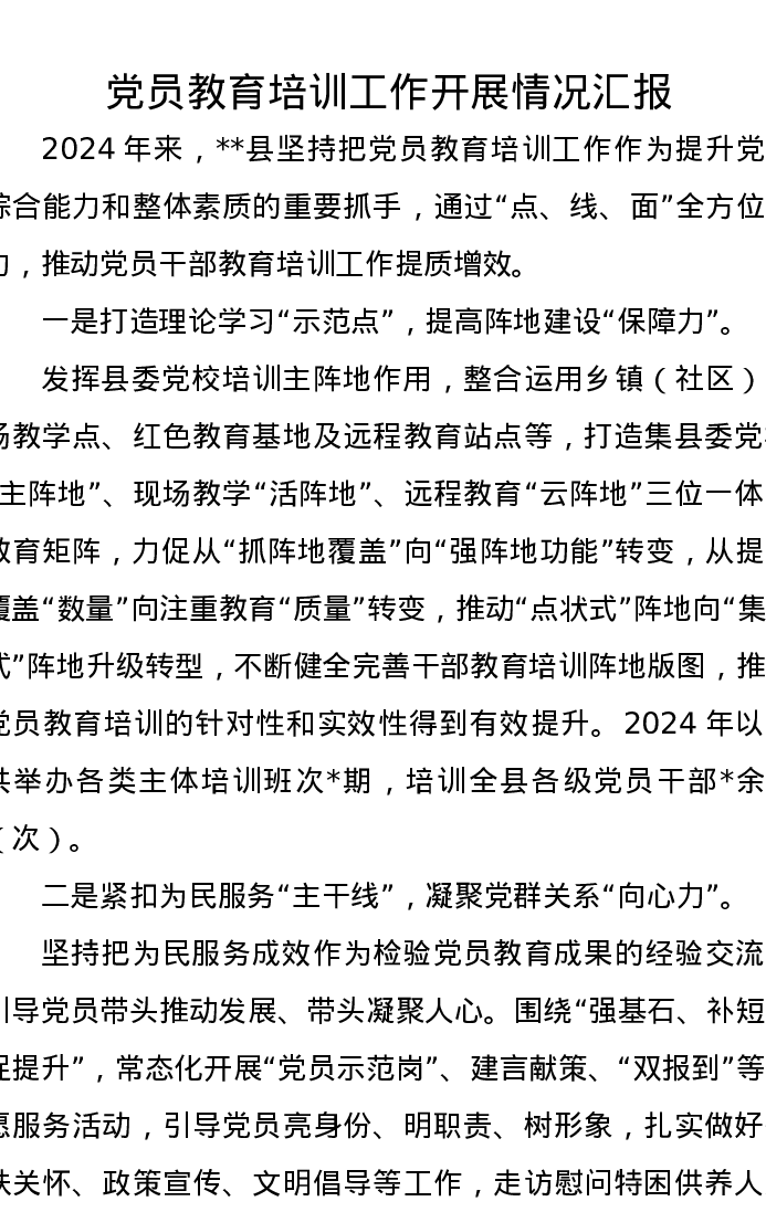 党员教育培训工作开展情况汇报