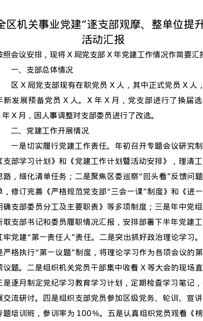 全区机关事业党建“逐支部观摩、整单位提升”活动汇报