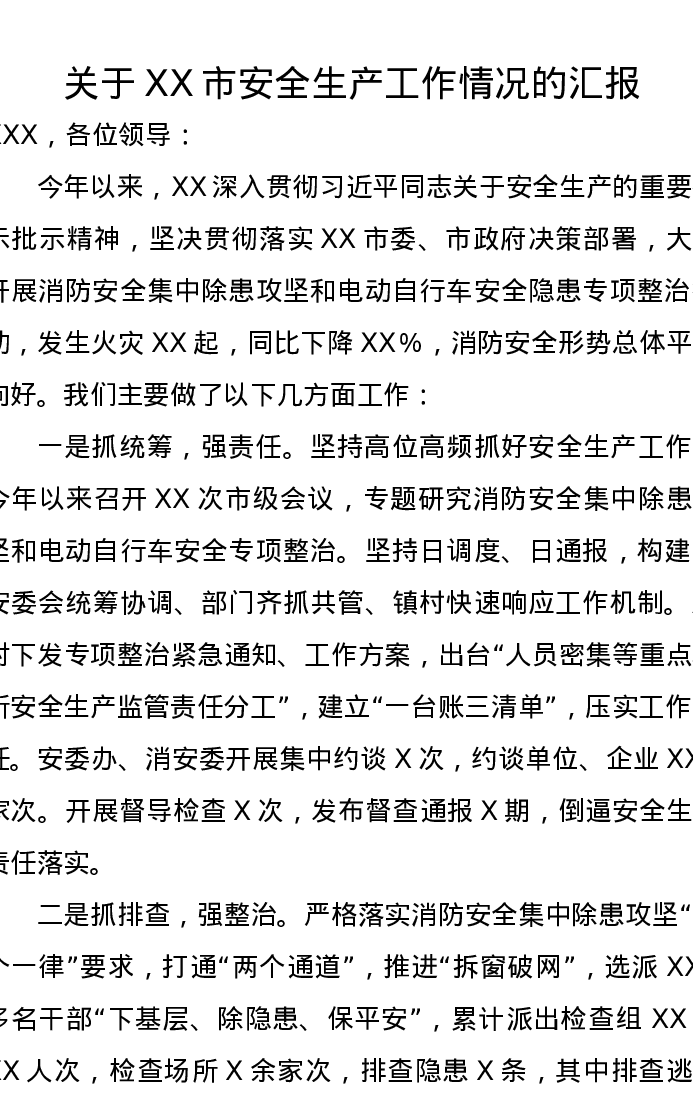 关于XX市安全生产工作情况的汇报