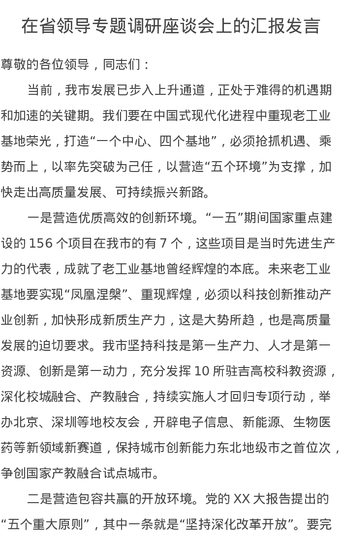 在省领导专题调研座谈会上的汇报发言