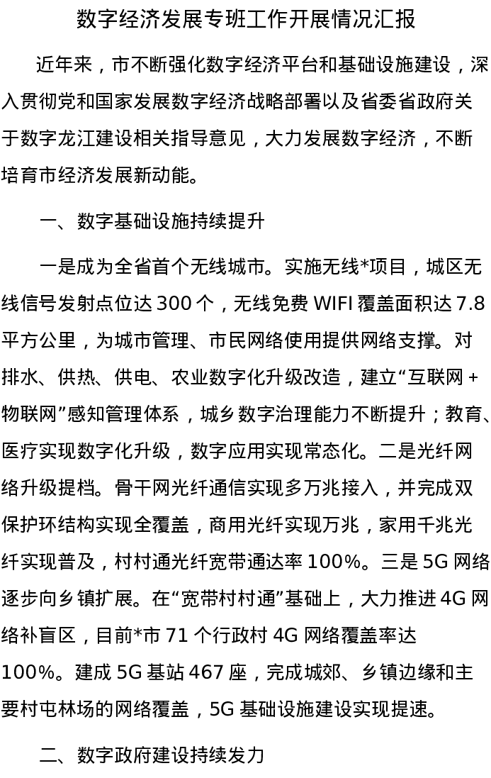 数字经济发展专班工作开展情况汇报