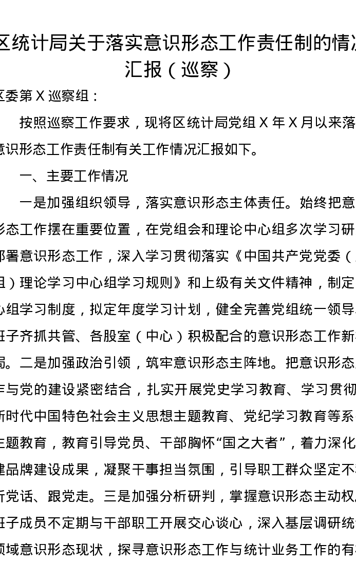 落实意识形态工作责任制情况总结汇报(向巡察组)