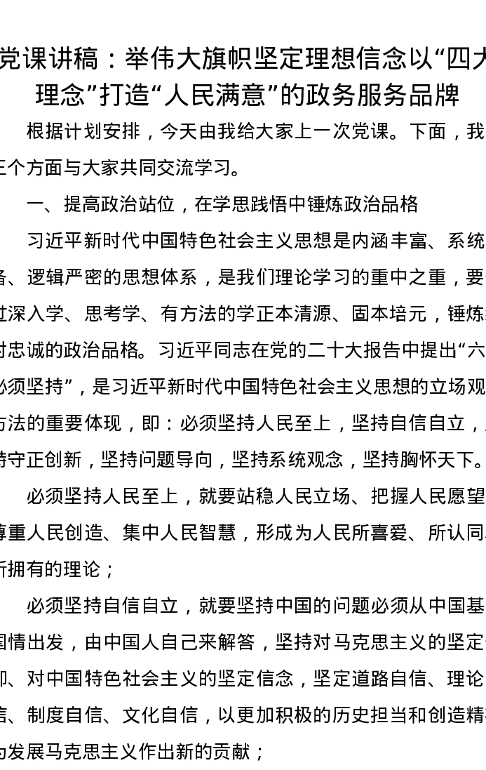 党课讲稿:举伟大旗帜坚定理想信念以“四大理念”打造“人民满意”的政务服务品牌