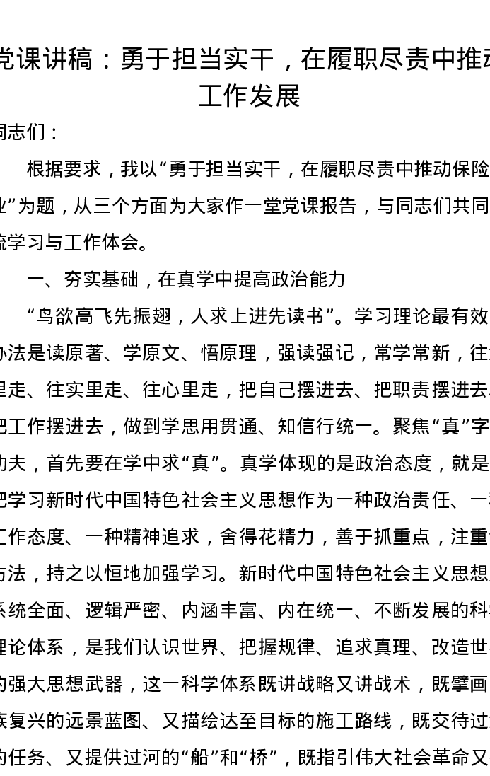 党课讲稿:勇于担当实干,在履职尽责中推动工作发展