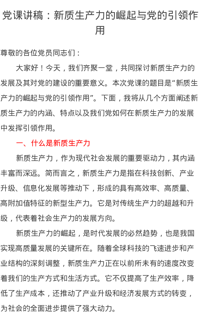 党课讲稿:新质生产力的崛起与党的引领作用