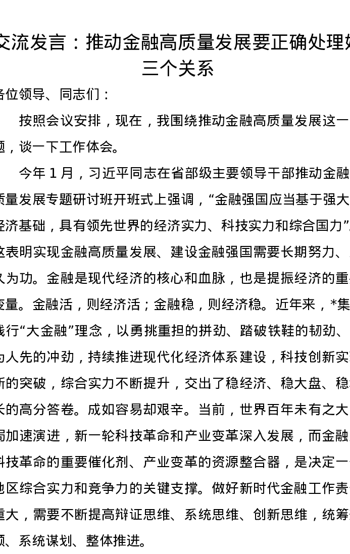 交流发言:推动金融高质量发展要正确处理好三个关系