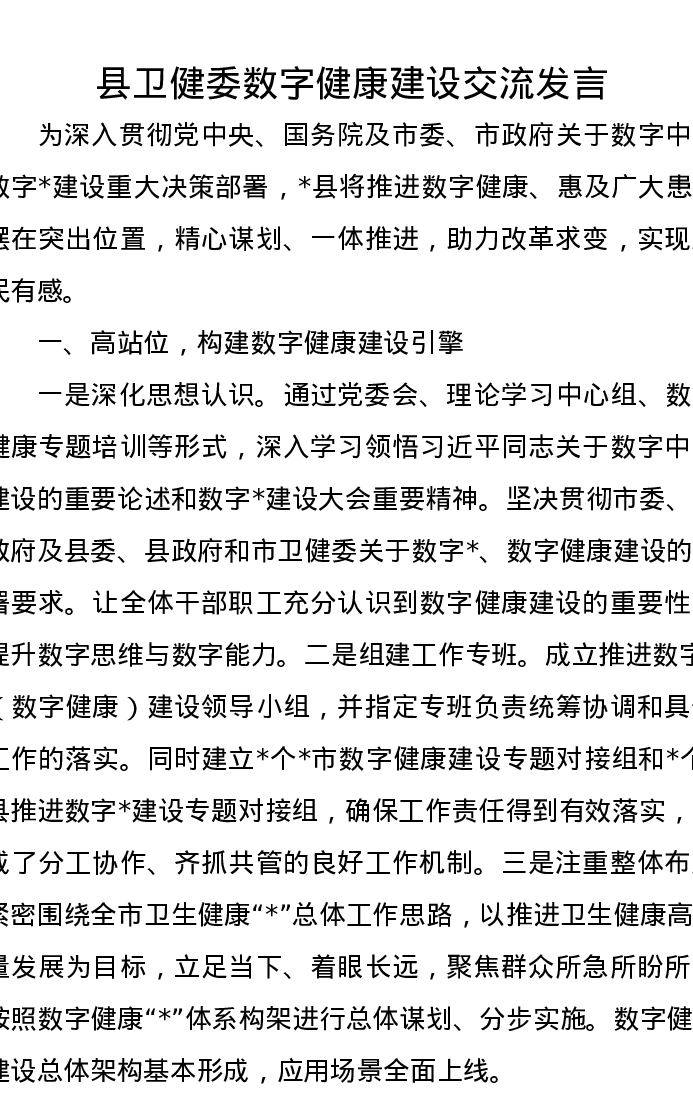 县卫健委数字健康建设交流发言