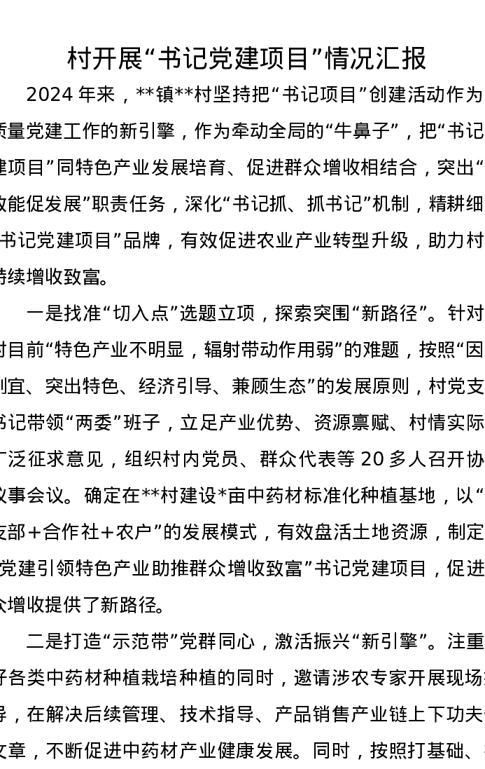 村开展“书记党建项目”情况汇报