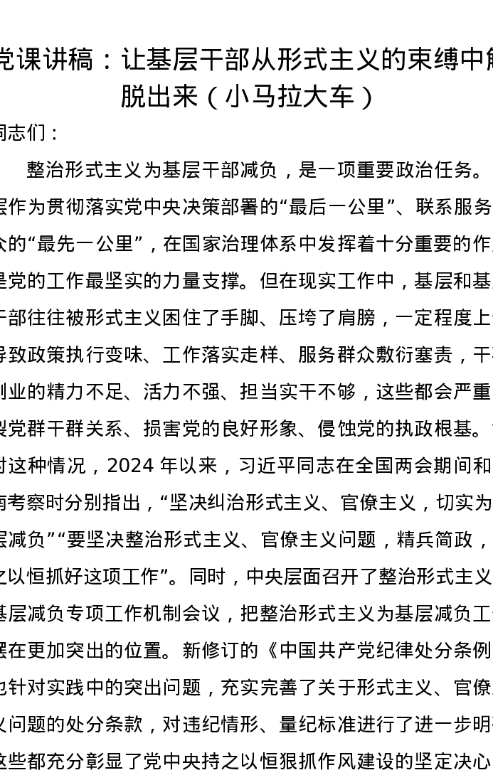 党课讲稿:让基层干部从形式主义的束缚中解脱出来(小马拉大车)