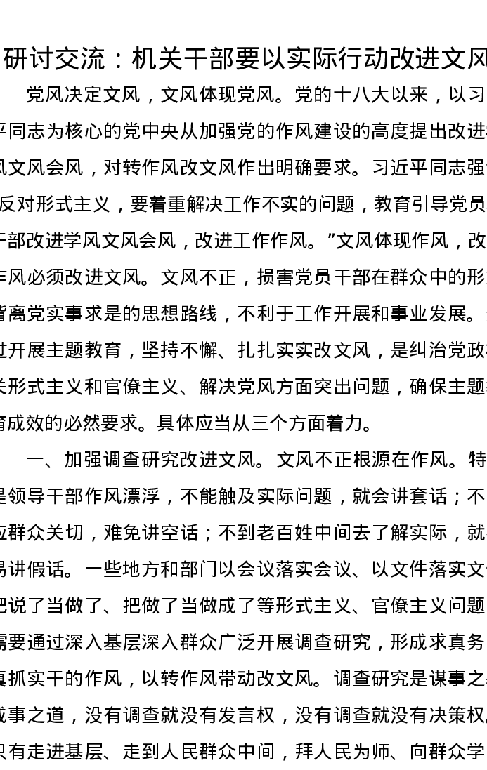 研讨交流发言:机关干部要以实际行动改进文风