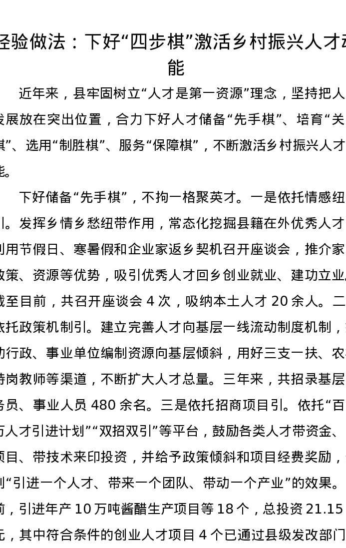 经验做法:下好“四步棋”激活乡村振兴人才动能