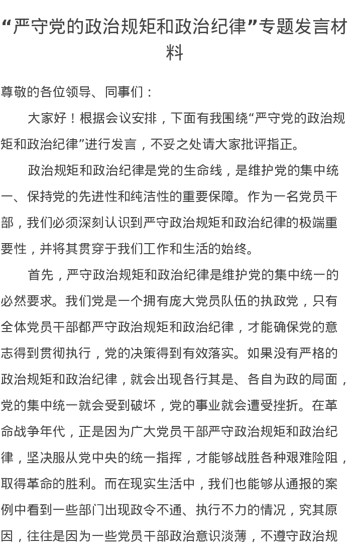 “严守党的政治规矩和政治纪律”专题发言材料