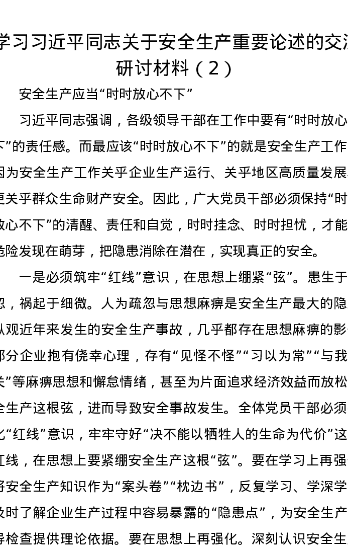学习习近平总书记关于安全生产重要论述的交流研讨材料(2)