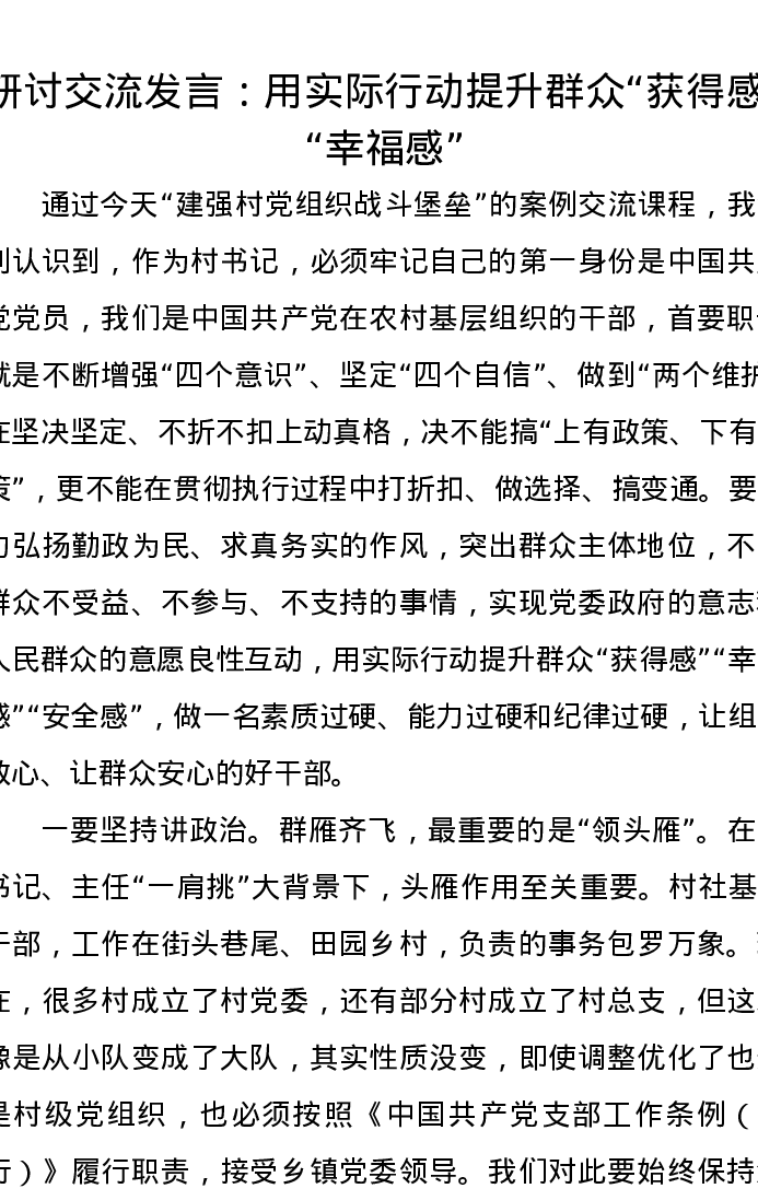 研讨交流发言:用实际行动提升群众“获得感”“幸福感”