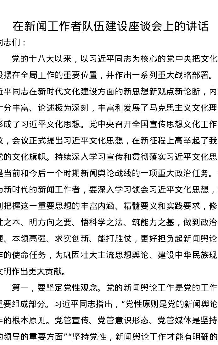 在新闻工作者队伍建设座谈会上的讲话