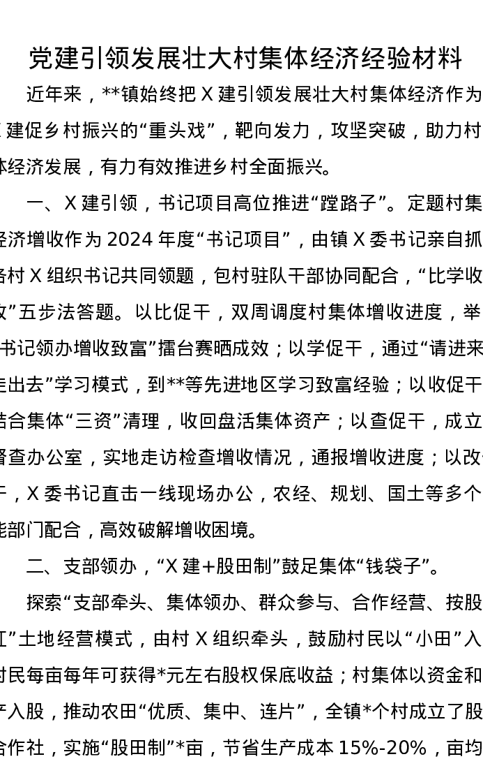 党建引领发展壮大村集体经济经验材料