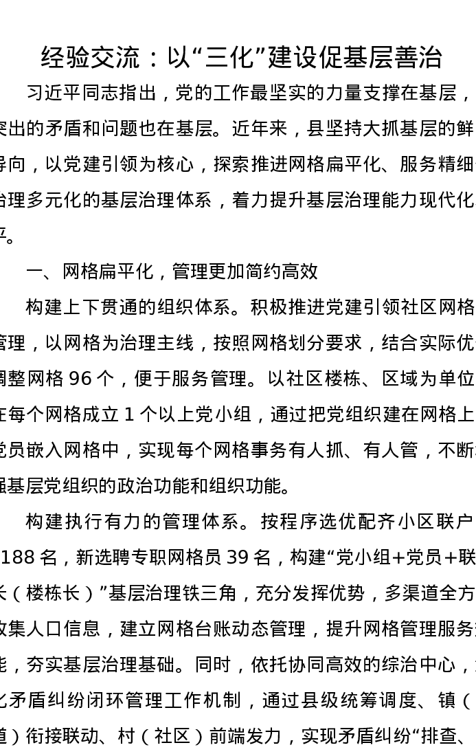经验交流:以“三化”建设促基层善治