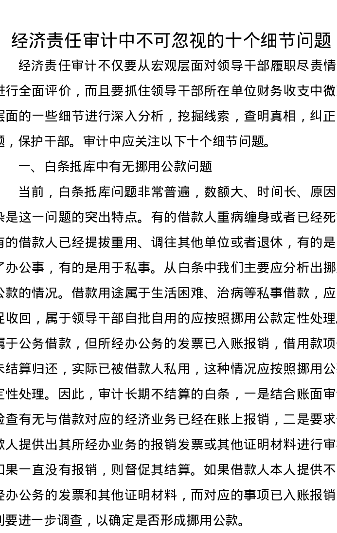 经验总结:经济责任审计中不可忽视的十个细节问题