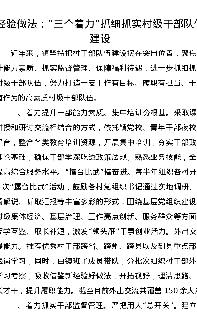 经验做法:“三个着力”抓细抓实村级干部队伍建设