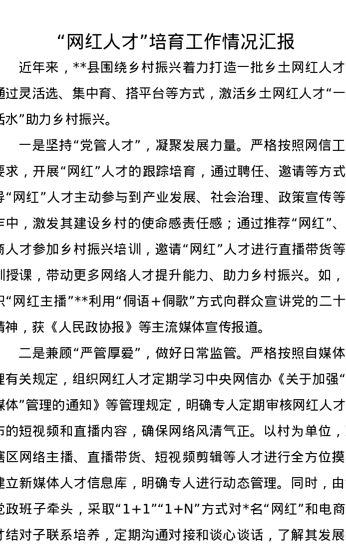 “网红人才”培育工作情况汇报