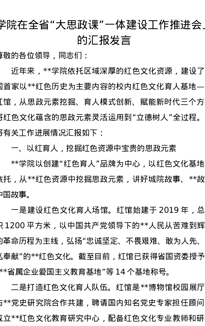 学院在全省“大思政课”一体建设工作推进会上的汇报发言