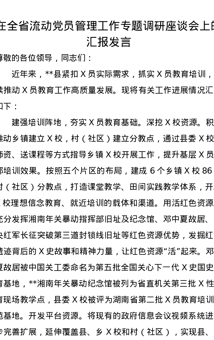 在全省流动党员管理工作专题调研座谈会上的汇报发言