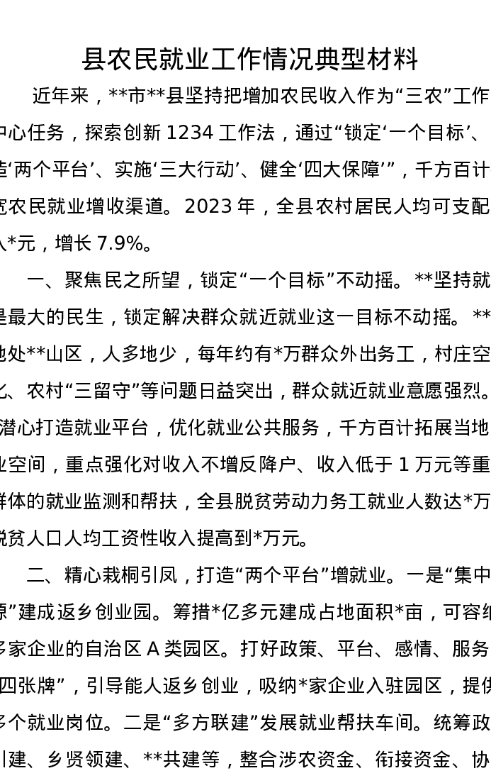 县农民就业工作情况典型发言材料