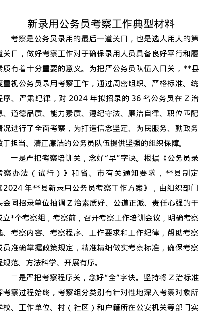 新录用公务员考察工作典型发言材料
