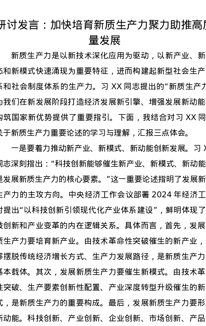 研讨发言:加快培育新质生产力聚力助推高质量发展