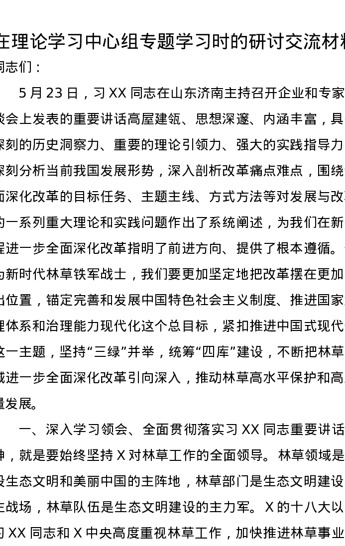 在理论学习中心组专题学习时的研讨交流发言材料