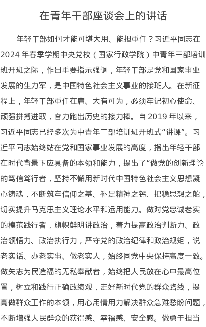 在青年干部座谈会上的讲话