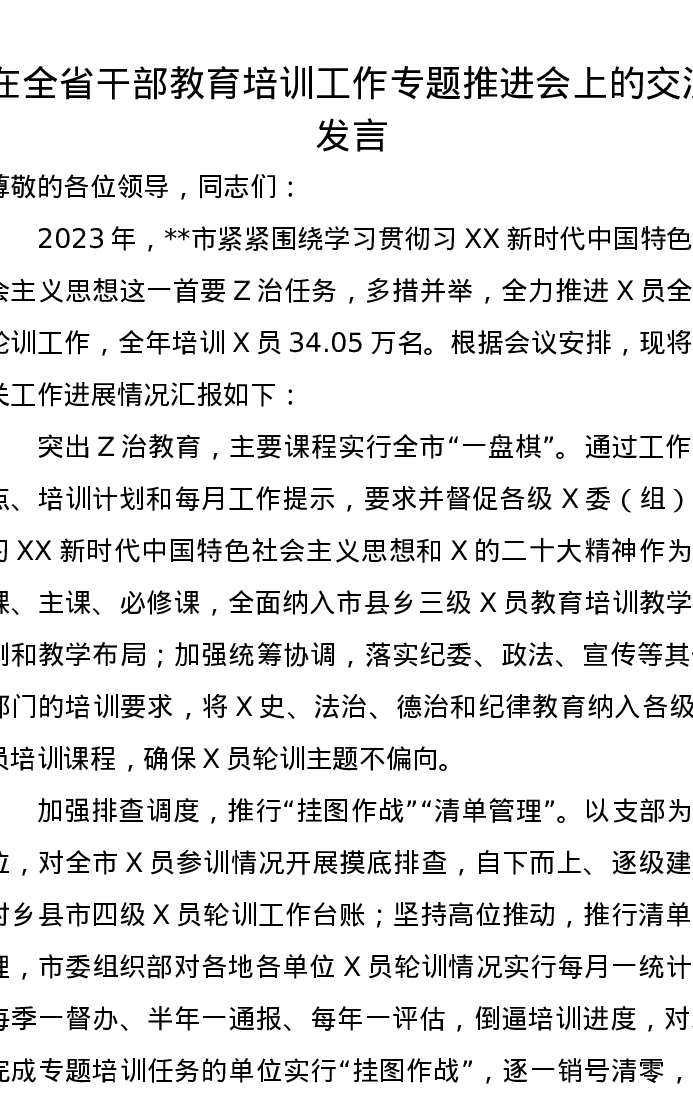 在全省干部教育培训工作专题推进会上的交流发言