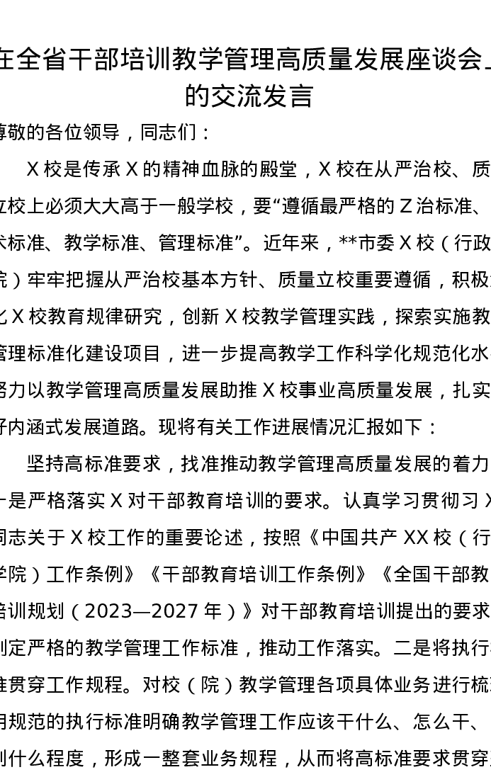 在全省干部培训教学管理高质量发展座谈会上的交流发言
