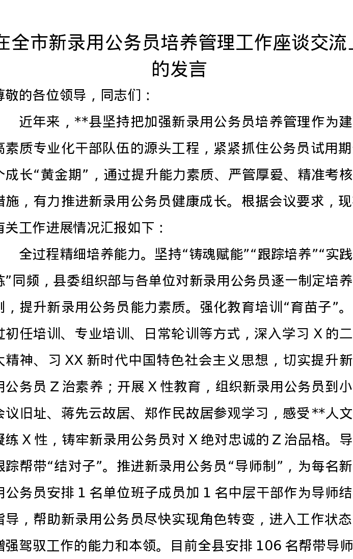 在全市新录用公务员培养管理工作座谈交流上的发言