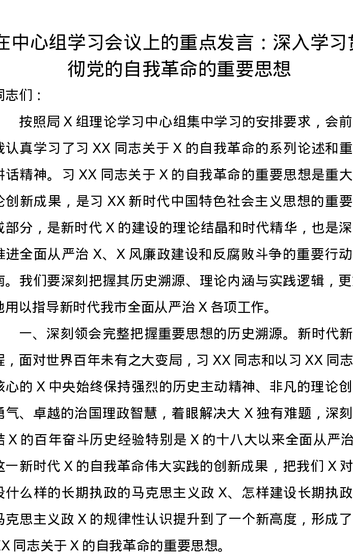 在中心组学习会议上的重点发言:深入学习贯彻党的自我革命的重要思想