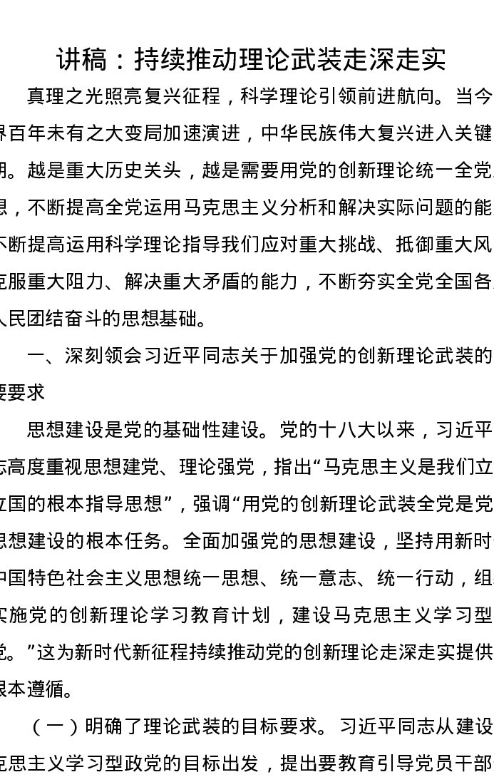 党课讲稿:持续推动理论武装走深走实