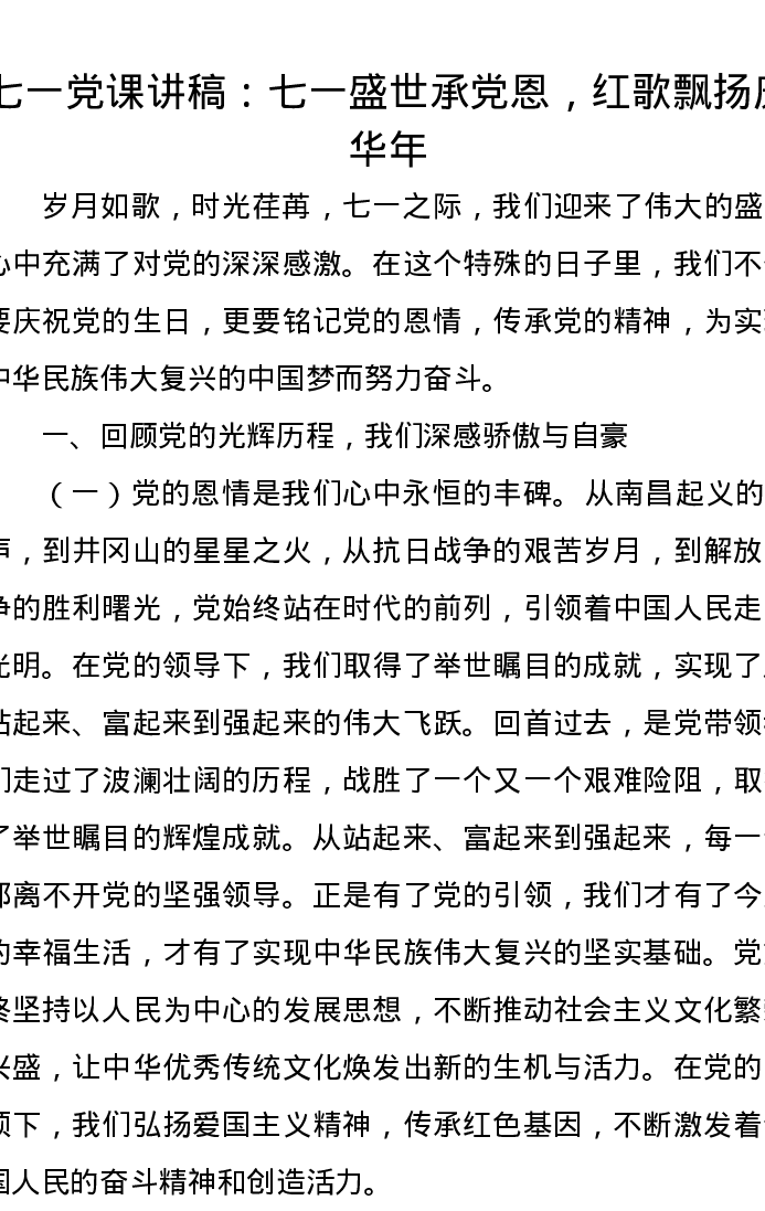 七一党课讲稿:七一盛世承党恩,红歌飘扬庆华年